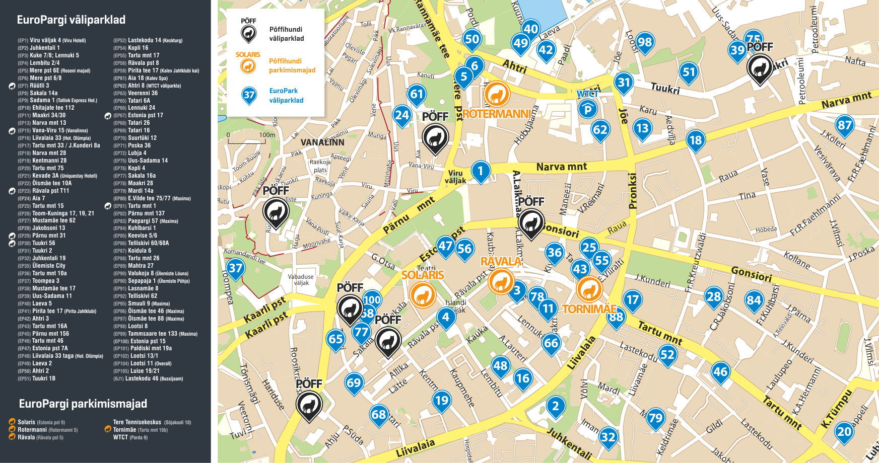 Rohkem kui 6000 kohaga parklavõrgustik on mugav ja soodne võimalus kesklinna äride ja teenusepakkujate külastamiseks.